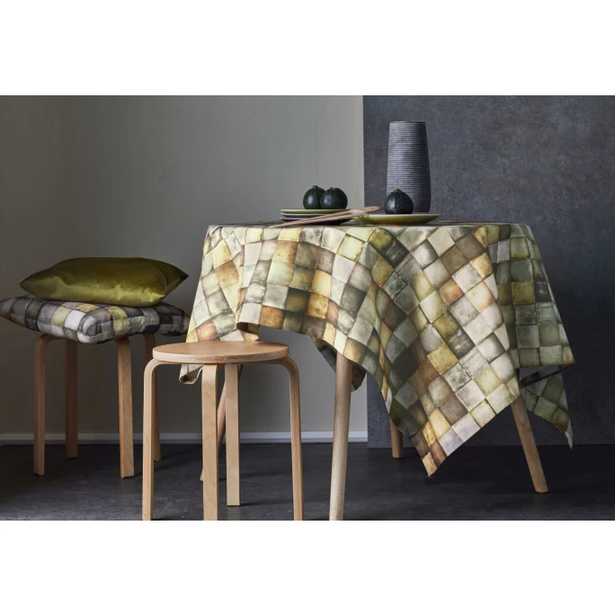 Bringen Sie Farbe auf Ihren Tisch mit der traumhaft schönen Tischdecke 1106 HERBSTZEIT aus dem Hause APELT. Die hübsche Mitteldecke HERBSTZEIT von Apelt lässt Ihre Wohnträume wahr werden mit exklusivem Design, welches durch die harmonisch aufeinander abgestimmte Farbgebung in gedämpften Herbst- und Erdtönen mit bezauberndem, grafischem Kachelmuster begeistert. Die hochwertig digital bedruckte Tafeldecke HERBSTZEIT besteht zu 100% aus Baumwolle, ist besonders hautangenehm und sehr pflegeleicht und strapazierfähig. Mit der edlen Mitteldecke 1106 HERBSTZEIT von Apelt sorgen Sie ganzjährig egal ob auf dem Esstisch, dem Tisch im Wintergarten oder dem großen Wohnzimmertisch für einen aufregenden Eyecatcher. Dank der großen aktuellen Farbauswahl lassen Sie sich die Tischtücher in nahezu jedes Wohnambiente harmonisch integrieren. Wir bieten Ihnen aus der Serie HERBSTZEIT verschiedene Farb- und Mustervarianten dieser exklusiven Tischdecken und passend dazu auch Dekokissen hier im AMBIENDO Shop an. Lassen Sie sich von diesen geschmackvollen Wohn-Accessoires verzaubern! Das Unternehmen APELT pflegt seit vielen Jahren die Tradition der Webkunst und entwickelt ganzheitliche Konzepte für die textile Gestaltung von Räumen. Exzellente Verarbeitung und das kreative, sowie technische Know-How spiegelt sich in den wundervollen Kollektionen wieder. Die Produkte bis hin zu den Stoffen von APELT werden in Deutschland entwickelt und produziert. Lassen Sie sich inspirieren und machen Sie aus Ihrem Tisch ein Schmuckstück mit der Tischdecke 1106 HERBSTZEIT von APELT und kombinieren Sie nach Lust und Laune mit den Zierkissen aus dieser Serie – Sie werden begeistert sein!
