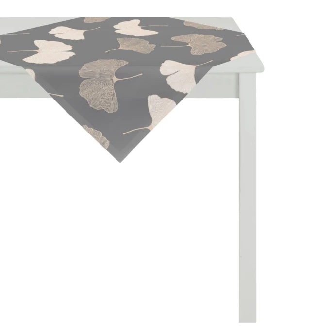 Zaubern Sie edlen Flair auf Ihren Tisch mit der feinen Mitteldecke GALA LOFT STYLE aus dem Hause APELT. Die luxuriöse Mitteldecke GALA LOFT STYLE von Apelt lässt Ihre Wohnträume wahr werden mit exklusivem Design, welches dank feiner Ausbrenner-Technik, hochwertig mit Metallpartikeln bedruckt mit topmodischen, stilisierten Gingkoblättern begeistert. Die wunderschöne Mitteldecke GALA LOFT STYLE mit bezaubernden Gingkoblatt-Motiv besteht aus 70% Polyester und 30% Viskose und ist pflegeleicht und strapazierfähig. Mit der edlen Mitteldecke GALA LOFT STYLE von Apelt sorgen Sie egal ob auf dem Esstisch, dem Tisch im Wintergarten oder dem großen Wohnzimmertisch für einen aufregenden Eyecatcher. Wir bieten Ihnen aus der Serie LOFT STYLE verschiedene Farb- und Mustervarianten exklusiver Tischtücher und passend dazu auch den GALA LOFT STYLE Ösenschal hier im AMBIENDO Shop an. Lassen Sie sich von diesen geschmackvollen Wohn-Accessoires verzaubern! Das Unternehmen APELT pflegt seit vielen Jahren die Tradition der Webkunst und entwickelt ganzheitliche Konzepte für die textile Gestaltung von Räumen. Exzellente Verarbeitung und das kreative, sowie technische Know-How spiegelt sich in den wundervollen Kollektionen wieder. Die Produkte bis hin zu den Stoffen von APELT werden in Deutschland entwickelt und produziert. Lassen Sie sich inspirieren und machen Sie aus Ihrem Tisch ein Schmuckstück mit der eleganten Mitteldecke GALA LOFT STYLE von APELT und kombinieren Sie nach Lust und Laune mit dem Ösenschal aus dieser Serie – Sie werden begeistert sein!
