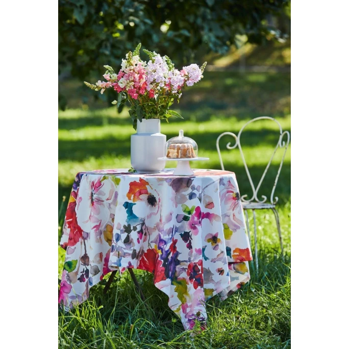 Wie gemalt! Das fein aquarellierte Sommerblüten-Motiv der Summergarden 1705 Mitteldecke von Apelt wird Sie begeistern! Das 88 cm x 88 cm große Tischtuch ist aus erstklassigem Polyestermix gefertigt, besonders illustrativ und pflegeleicht und steht Ihnen in zwei verschiedenen Größen zur Auswahl. Der hochwertige Digitaldruck bringt die Farben und den kunstvollen Aquarell-Look des liebevoll gestalteten Motivs erst so richtig zur Geltung. In der eigenen Weberei von Apelt produziert und nach Ökotex-Standard 100 schadstoffgeprüft, ist das farbenfrohe Blütendesign der Summergarden 1705 Tischwäsche auch als Tischläufer, Tischdecke und als Kissenhüllen erhältlich. Die hübsche Mitteldecke kann bei 30°C im Schonwaschgang gereinigt und bei mittlerer Temperatur gebügelt werden. Geben Sie Ihrem Zuhause oder der nächsten Gartenparty einen bunten Farbtouch und lassen sich von der Qualität und dem Design begeistern!