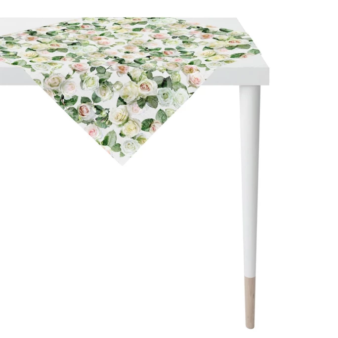 Ein wahrer Blütentraum! Die wunderschöne Mitteldecke Summergarden 1624 von Apelt lässt Ihr Herz ganz bestimmt höher schlagen. Die 100 cm x 100 cm große Tischwäsche ist aus reiner Baumwolle gefertigt und mit einem romantischen Blumenmotiv aus gefüllten Teerosen bedruckt. Der hochwertige Digitaldruck ist dabei fotoreal und bringt die Farben und die Details des liebevoll gestalteten Motivs erst so richtig zur Geltung. In der eigenen Weberei von Apelt produziert und nach Ökotex-Standard 100 schadstoffgeprüft, ist die verträumte Mitteldecke Summergarden 1624 in zwei Farbvarianten und Größen, als Tischdecke und als Tischläufer erhältlich. Das pflegeleichte Gewebe kann bei 30°C im Schonwaschgang gereinigt und bei mittlerer Temperatur gebügelt werden. Und wenn Sie sich jetzt so richtig in das romantische Rosendesign der Apelt Summergarden Kollektion verliebt haben und für die nächste Gartenparty oder Hochzeit eine ganz besondere Deko suchen: Hier im Shop bietet AMBIENDO Ihnen – passend zur Springtime 1620 Tischwäsche – auch das gefüllte Dekokissen in Herzform, die passenden Kissenhüllen in zwei verschiedenen Größenvarianten und das passende, runde Stuhlkissen an. Lassen Sie sich von der Qualität und dem Design verzaubern!