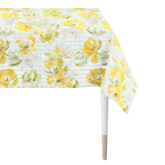Ein farbenfroher Hingucker! Das tolle Frühlingsmotiv der Apelt Tischdecke Springtime 6405 setzt wunderschöne Akzente auf Ihrem Esstisch. Aus OEKO-TEX STANDARD 100 zertifiziertem Polyester-Baumwollmix hergestellt, ist Springtime 6405 mit üppigen Papageientulpen auf einem dezenten Aquarellkaro verziert. Egal ob im Alltag oder auf der festlich geschmückten Tafel: Die Apelt Springtime 6405 Tischwäsche passt einfach zu jedem Anlass, lässt sich hervorragend mit schlicht weißem oder trendig buntem Porzellan kombinieren und kann problemlos im Feinwaschgang gereinigt werden. Und wenn Sie es gerne perfekt mögen: Hier im Shop bietet AMBIENDO Ihnen – passend zu der Apelt Tischdecke – auch die Springtime 6405 Kissenbezüge in unterschiedlichen Größenvarianten an. Lassen Sie sich von der hohen Qualität und dem tollen Look begeistern und verwandeln Ihren Esstisch in einen frühlingshaften Blütentraum!