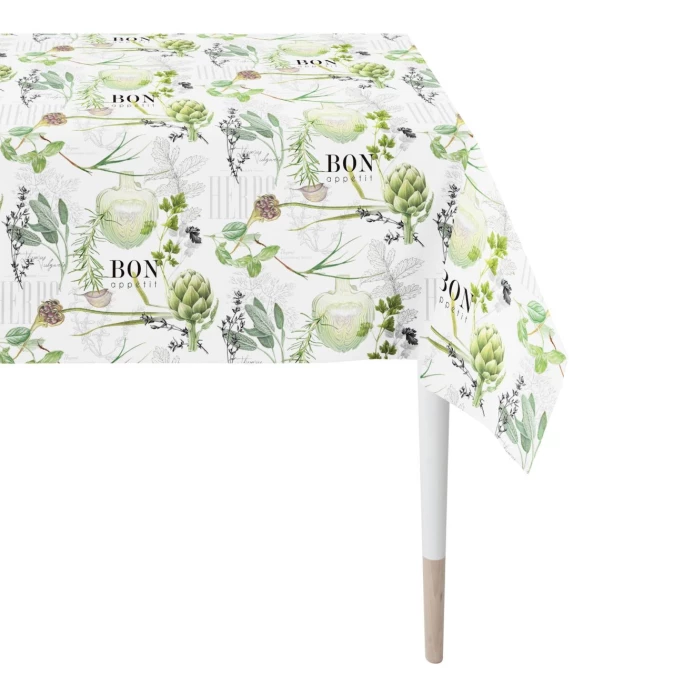 Bon Appetit! Die Apelt Summer Garden 7188 Tischwäsche macht Lust auf richtig gutes Essen! Unterschiedliche Kräuter- und Gemüsesorten zieren das helle Baumwollgewebe, während die – mal kleinen, mal großen – Schriftzüge die einzelnen Kräuter bezeichnen oder einfach nur einen “Guten Appetit” wünschen. Die trendige Summer Garden 7188 Tischdecke ist maschinenwaschbar und kann bei mittlerer Temperatur gebügelt werden. Kombinieren Sie die Tischwäsche doch einfach mit den passenden Summer Garden 7188 Kissenhüllen oder den unifarbenen Tischsets der Basic Kollektion von Apelt und Sie erhalten im Handumdrehen eine wunderschöne Tischdekoration, die ganz bestimmt alle Blicke auf sich zieht. Lassen Sie sich von dem tollen Look der Apelt Tischdecke begeistern und holen sich ein Stück französische Lebensart in Ihr Zuhause!