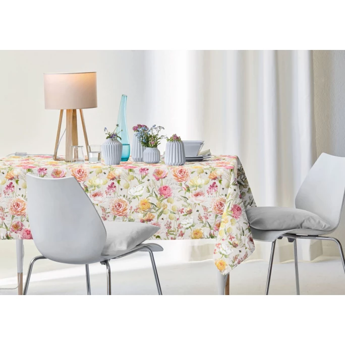 Das romantische Sommermotiv der Apelt Tischdecke Summertime 7701 ist einfach ein echter Hingucker! Üppige, bunte Rosen und Sommerblüten, kleine Hummeln und feine Schriftzüge zieren das feine Satingewebe aus pflegeleichtem und OEKO-TEX STANDARD 100 zertifiziertem Polyestermix. Egal ob im Alltag, bei der lockeren Gartenparty oder auf der festlich geschmückten Tafel: Die Apelt Summertime 7701 Tischwäsche passt einfach zu jedem Anlass, lässt sich hervorragend mit schlicht weißem oder trendig buntem Porzellan kombinieren und kann problemlos bei 30° in der Waschmaschine gereinigt werden. Und wenn Sie es gerne perfekt mögen: Hier im Shop bietet AMBIENDO Ihnen – passend zu der Apelt Tischdecke – auch die Summertime 7701 Kissenhülle in verschiedenen Größenvarianten an. Lassen Sie sich von der hohen Qualität und dem romantischen Look begeistern und verwandeln Ihren Esstisch in einen echten Eyecatcher!