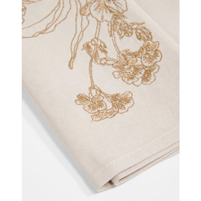 Diese Serviette ist so schön wie ein Gemälde! Daher auch der Name – Masterpiece: Essenza betrachtete die Stillleben der niederländischen Altmeister als Inspiration für die goldene Blumenstickerei. Der schmal abgesteppte Saum rundet das optische Gesamtbild dabei perfekt ab. Kombinieren Sie das 45×45 cm große Mundtuch doch einfach mit der eleganten Tischwäsche oder dem wunderschönen Porzellan aus der Masterpiece-Serie von Essenza und machen den Look perfekt! Aus reiner Baumwolle gefertigt, ist das 4-teilige Essenza Servietten-Set besonders robust, langlebig und pflegeleicht und kann problemlos bei 40° in der Waschmaschine gereinigt und anschließend im Trockner getrocknet werden. Lassen sich von der hohen Qualität und dem schönen Dessin der Masterpiece-Serie von Essenza begeistern!