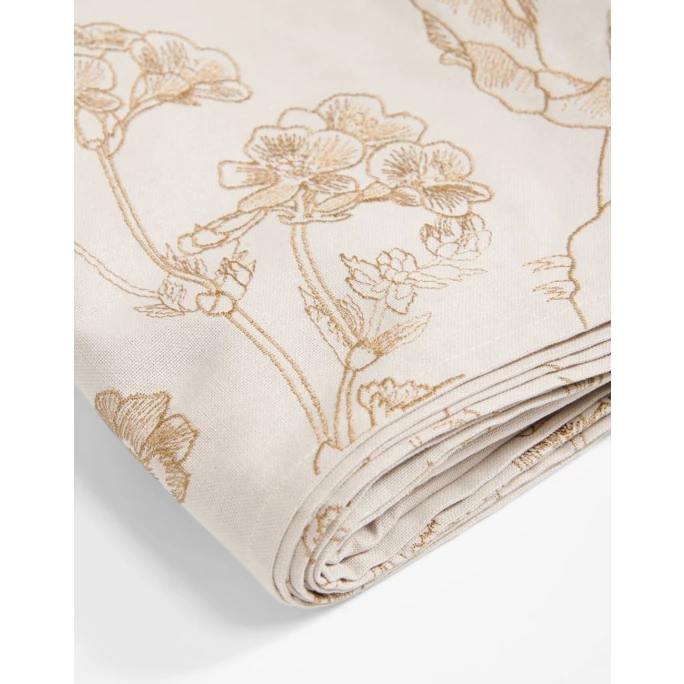 Diese Tischdecke ist so schön wie ein Gemälde! Daher auch der Name – Masterpiece: Essenza betrachtete die Stillleben der niederländischen Altmeister als Inspiration für die goldene Blumenstickerei. Der schmal abgesteppte Saum rundet das optische Gesamtbild dabei perfekt ab. Kombinieren Sie das 140×300 cm große Tischtuch doch einfach mit den eleganten Tischsets und Stoffservietten oder dem wunderschönen Porzellan aus der Masterpiece-Serie von Essenza und machen den Look perfekt! Aus reiner Baumwolle gefertigt, ist die Essenza Tischdecke besonders robust, langlebig und pflegeleicht und kann problemlos bei 40° in der Waschmaschine gereinigt und anschließend im Trockner getrocknet werden. Lassen sich von der hohen Qualität und dem schönen Dessin der Masterpiece-Serie von Essenza begeistern!