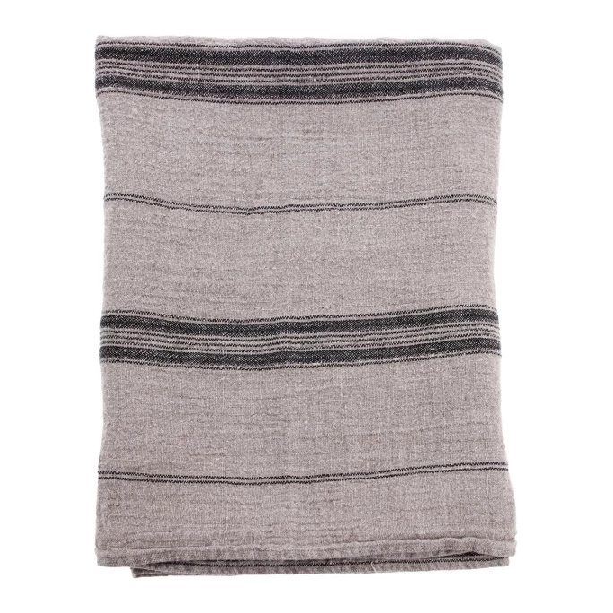 Verleihen Sie Ihrem Zuhause mit dem Tischtuch der Linnen Serie von HK living einen rustikalen und doch modernen Touch. Das reine Leinenmaterial, der tolle Naturton, das wunderschöne, dunkle Streifendesign und der schmal abgesteppte Umschlag mit den sauber gearbeiteten Ecken macht dieses tolle Accessoire einfach zu einem echten Must-have für Ihre Tischdekoration. Ob im Alltag oder für die kleine festliche Tafel, mit feinem Porzellan oder kräftigem Steingut kombiniert, das 140×220 cm große Tischtuch Linnen von HK living ist einfach ein echter Eyecatcher der zu vielen Tischarrangements und Wohnstilen passt. Die leicht grobe Webstruktur verleiht diesem tollen Tischtuch einen zarten, rustikalen Touch, der mit dem modernen Streifendesign einfach wunderbar harmoniert. Und wenn Sie es gerne Ton in Ton mögen: Die passenden 45×45 cm großen Servietten gibt es hier bei uns im Shop. Überzeugen Sie sich selbst und verleihen Ihrem Esstisch mit der wunderschönen Leinen-Tischdecke der Linnen Serie von HK living eine ganz besondere Note!